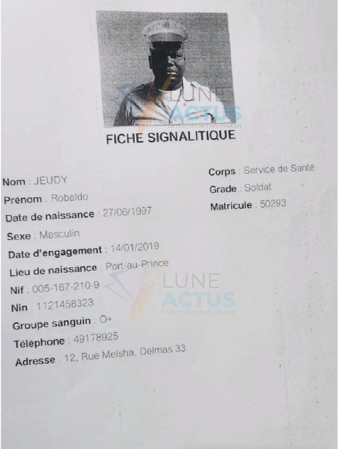 – Robaldo JEUDY (matricule 50293) : Il aurait emporté un fusil T-4 de calibre 5.56 (numéro de série 860447) et trois chargeurs.